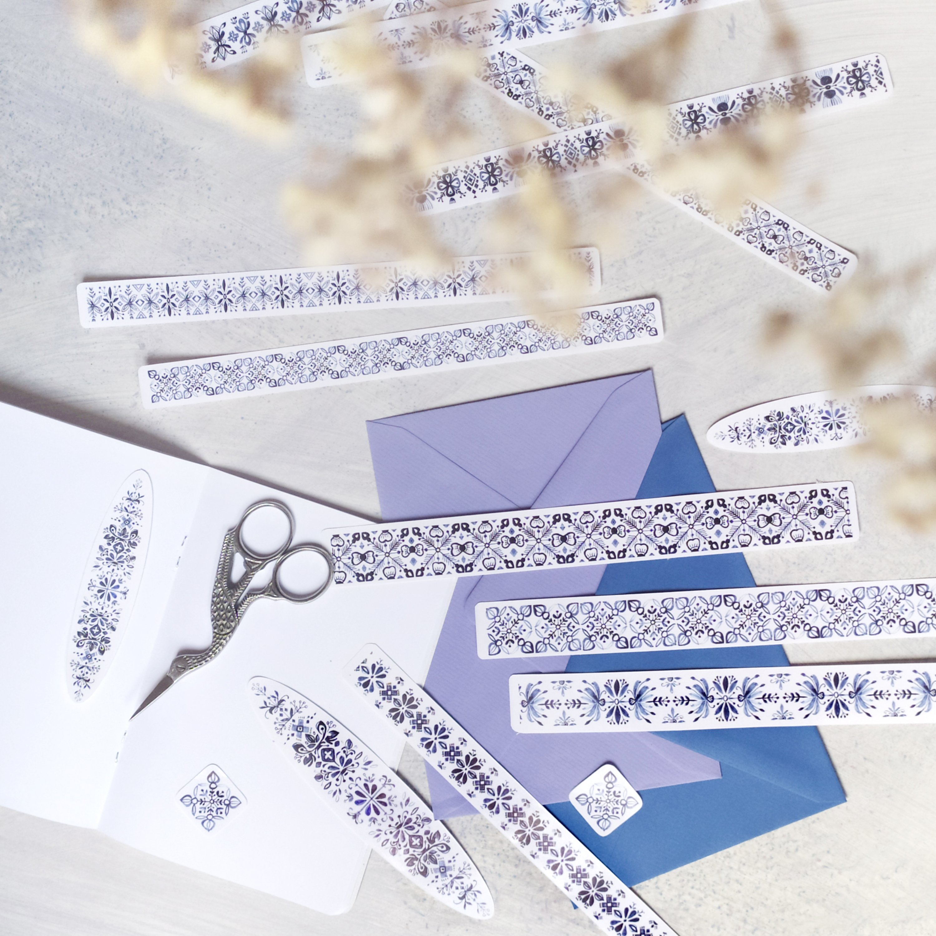 • motivy z autorské tvorby • sada 15 ks: 10 pásků (délka pásku 20 cm) + 3 elipsy + 2 čtverečky • motivy jsou vyřezané • Ideálně poslouží: do diáře na výrobky bullet journal scrapbooking "pečeť" na obálky na dárky • samolepka papírová